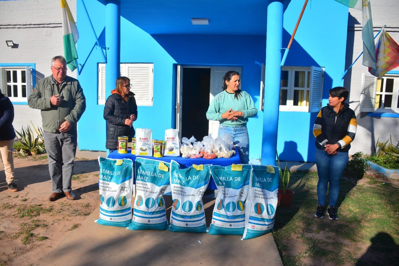En la localidad de Zaparinqui, este 12 de agosto, el intendente Pío Oscar Sander , junto a la secretaria de Producción y Desarrollo Local Jessica Kloster y la delegada municipal Mariana López, hicieron entrega de semillas de maíz y cucurbitáceas a más de treinta productores de la zona.