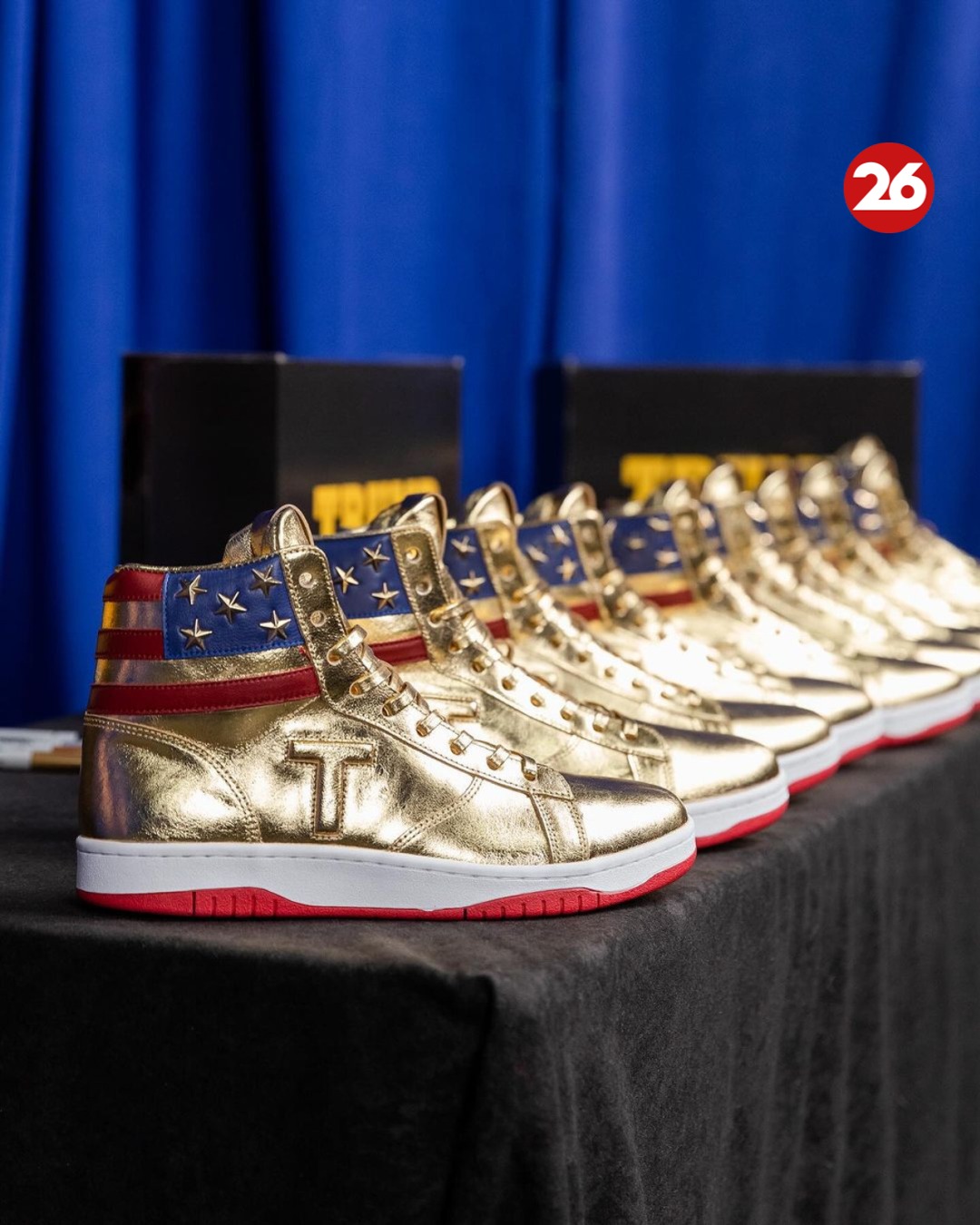Un día después de ser condenado a pagar 355 millones de dólares en deudas, el expresidente de Estados Unidos, Donald Trump, anunció el lanzamiento de una marca de zapatillas deportivas. Durante una sorpresiva aparición en la convención de zapatillas «Sneaker Con» en Filadelfia, presentó el modelo ‘Never Surrender’ (Nunca te rindas), un calzado dorado con detalles de la bandera estadounidense, la letra «T» de su apellido y un precio de 399 dólares.