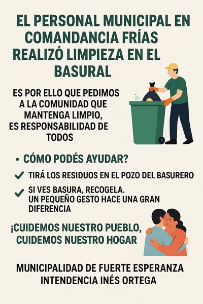 El personal municipal en Comandancia Frías realizó limpieza en el basural, pedimos a la comunidad que pueda mantener la limpieza, el gran trabajo que ellos realizaron.