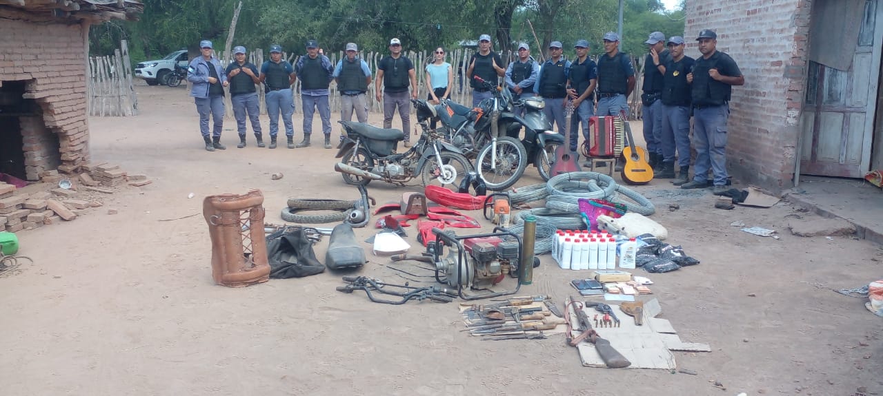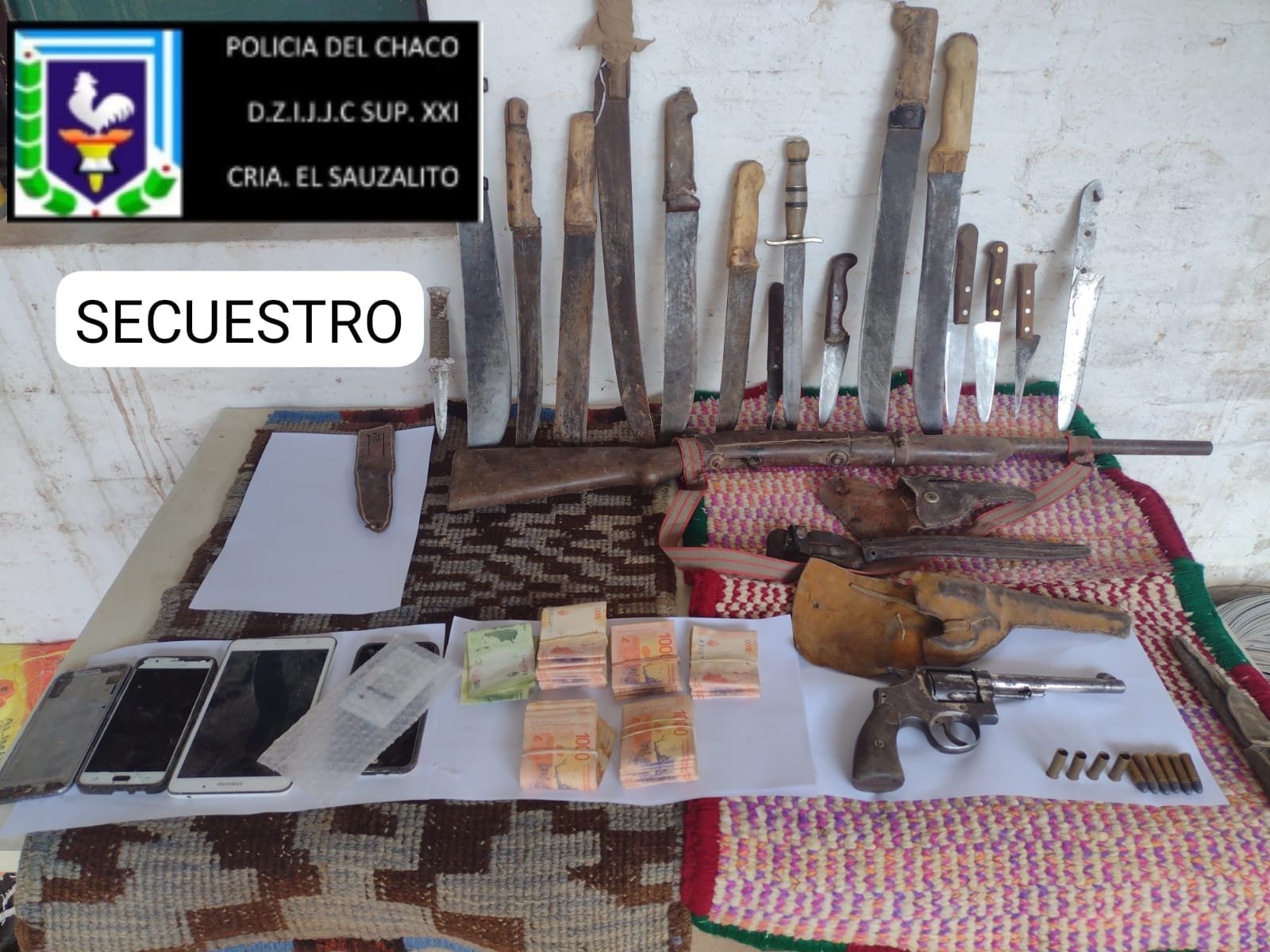 En la jornada de hoy sábado 6 de enero, a desde horas 14:30 aproximadamente Personal policial de la Comisaria el Sauzalito Junto a unidades dependiente de esta Dirección de Zona, realizó un allanamiento en Paraje Bajo Verde en un inmueble de los ciudadanos con iniciales G. A y G A. en una causa SUP. TENTATIVA HOMICIDIO, DAÑOS AGRAVADOS A BIENES DEL ESTADO Y ABUSO DE ARMA. Con la intervención FISC.INV.PENAL M.N.POMPEYA A/C DR. SOSA MARCELO, donde se procedió al secuestro de elementos de interés (01) arma fuego tipo revólver c/ 32 c/tambor 6 alveolos (cargados c/cartuchos mismo calibre s/percutar) (04) vaina servidas calibre 38. (01) Arma fuego tipo escopeta calibre 36 sin marca y numeración visible.(01) motocicleta Honda XR 250 c.c. c/negra con detalles rojo, s/dominio 961-JBZ. Como así SECUESTROS IMPOSTERGABLES: (02) motocicletas marca Zanella ZB 110 c.c.(02) teléfonos celulares marca SAMSUNG c/gris