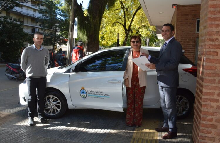 El Ministerio Público de la Defensa recibió un vehículo cero kilómetro que será destinado al uso oficial de defensorías, asesorías y Órgano de Revisión de Salud Mental en toda la provincia. Se trata de un Toyota Yaris XLS 1.5 que fue entregado por el secretario de Superintendencia, Daniel Zalazar, a la defensora general Alicia Alcalá para que ella lo destine al uso detallado precedentemente.