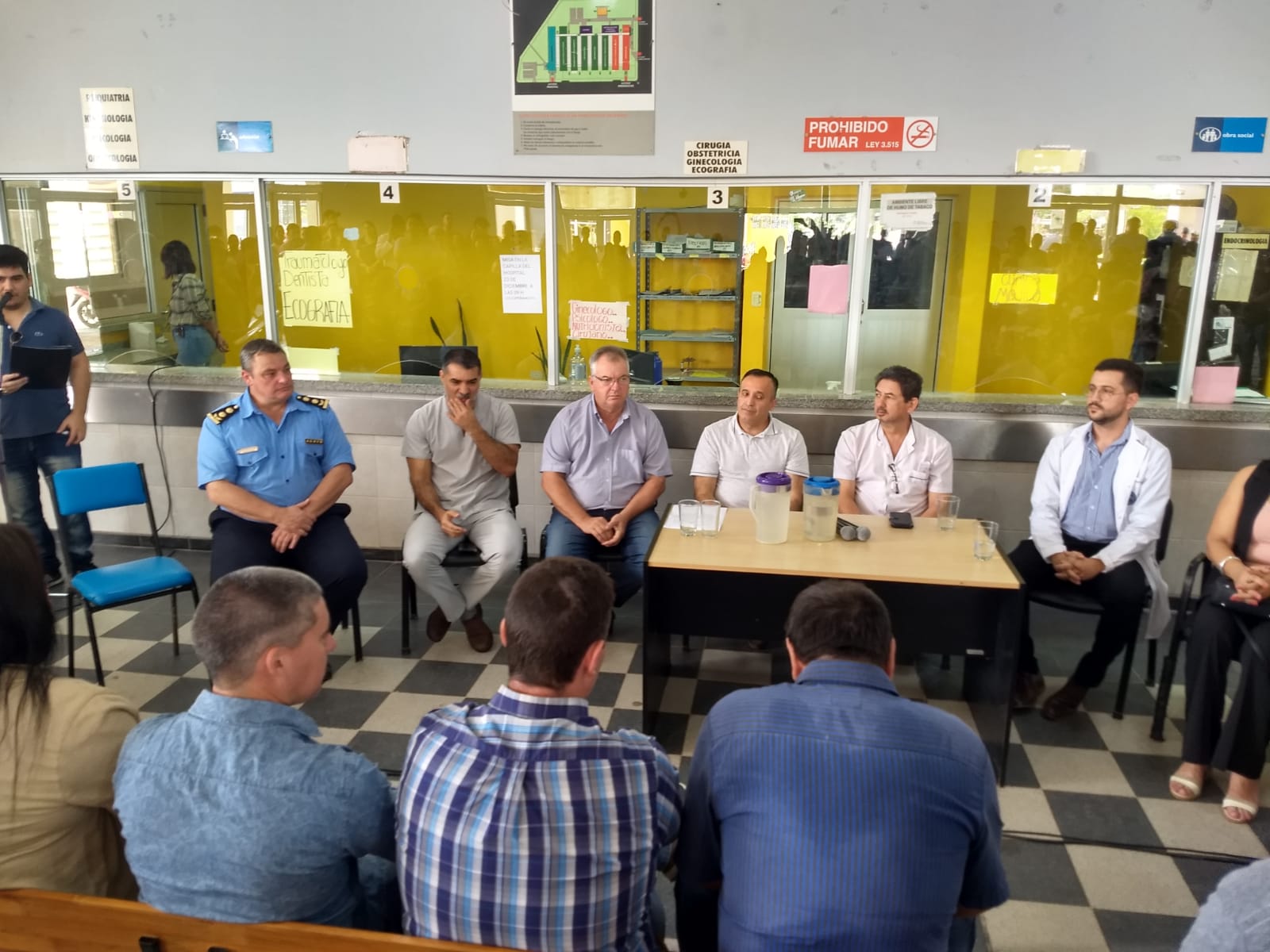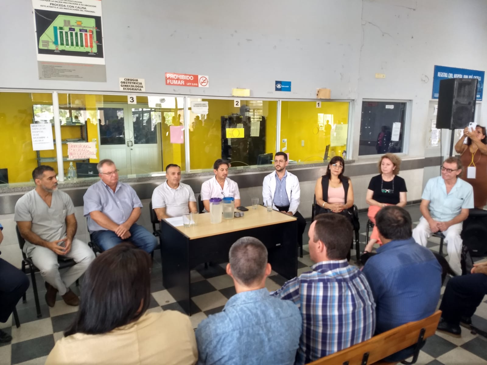 Una vez finalizado el acto, el ministro, la directora y los funcionarios recorrieron las instalaciones del nosocomio local, saludo a los médicos, trabajadores, pacientes y finalizo con una reunión de trabajo en al dirección del HBGG.