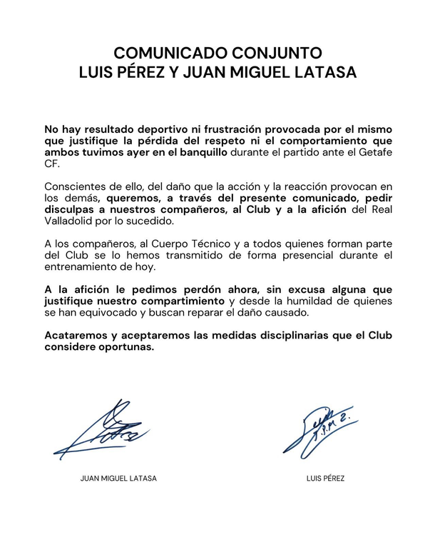 El club no tardó en emitir un comunicado oficial condenando el incidente: “Lamentamos profundamente la imagen ofrecida por nuestros jugadores. La frustración debe traducirse en más compromiso, no en enfrentamientos. En defensa de la imagen del club y el respeto hacia los compañeros y la afición, se aplicará el Reglamento de Régimen Disciplinario con ambos jugadores”.