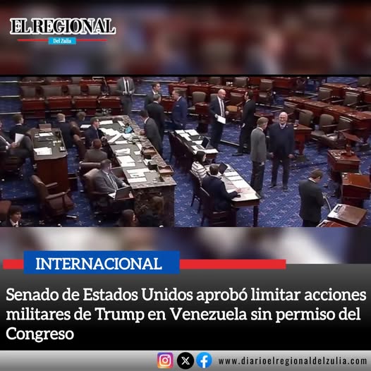 ESTADOS UNIDOS | CON 52 VOTOS A FAVOR Y 47 EN CONTRA, EL SENADO NORTEAMERICANO APROBÓ UNA RESOLUCIÓN QUE IMPEDIRÍA AL PRESIDENTE DONALD TRUMP ORDENAR NUEVAS ACCIONES MILITARES EN VENEZUELA SIN AUTORIZACIÓN DEL CONGRESO