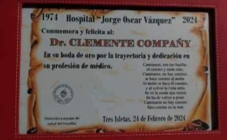 El 24 de febrero de este año 2024, el Dr. Clemente Compañy cumplió sus Bodas de Oro-50 Años de Médico.