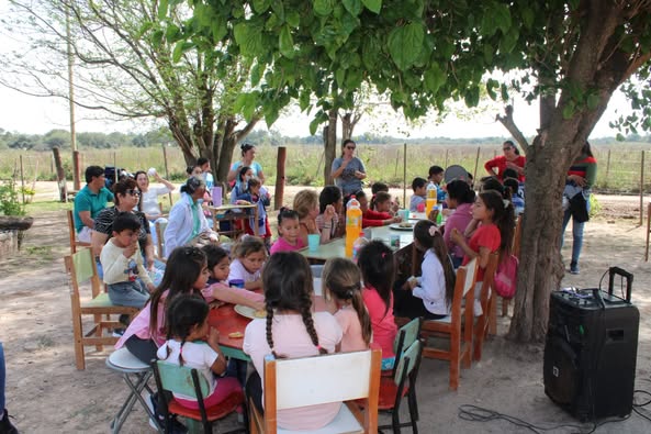 El Teatro Municipal acompañó con alegría a los niños de la EEP N°1042 del Paraje El Quemado Grande y sus Anexos, compartiendo junto a su directora, Mariela Alegre, docentes, padres y toda la comunidad educativa una jornada colmada de juegos, risas y diversión .