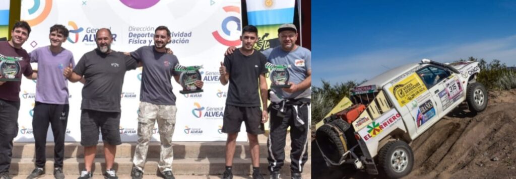 Finalizo la primera fecha del Rally Raid Country «La Encrucijada» en Gral.Alvear-Mendoza con la participación de pilotos y equipos de Chaco,Entre Rios, Santa Fe, Buenos Aires, La Pampa, Río Negro, Neuquén, Chubut y San Juan….Con ríos secos y las dunas de El Nihuil,mas un tramo nocturno fueron los tres dias de competencia donde el representante chaqueño Carlos Verza,en camioneta proto en la categoria T2-«A»junto a su copiloto Matias Alcaraz hizo podio luego algunos problemas en la suspencion trasera finalizando en el 3° lugar…..