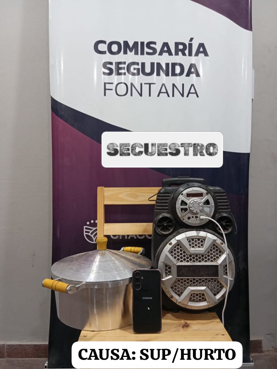 Los objetos recuperados; un parlante, un celular Samsung y una olla de aluminio, fueron secuestrados y reconocidos por el damnificado como de su propiedad. Por disposición de la Fiscalía en turno, los elementos fueron restituidos, mientras continúan los patrullajes para dar con el autor del hecho.