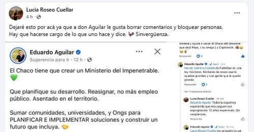 FUERTE CRUCE EN REDES SOCIALES ENTRE LA HIJA DE MANUEL ROSEO Y EL EX SENADOR EDUARDO AGUILAR POR LA EXPROPIACIÓN DE LA FIDELIDAD