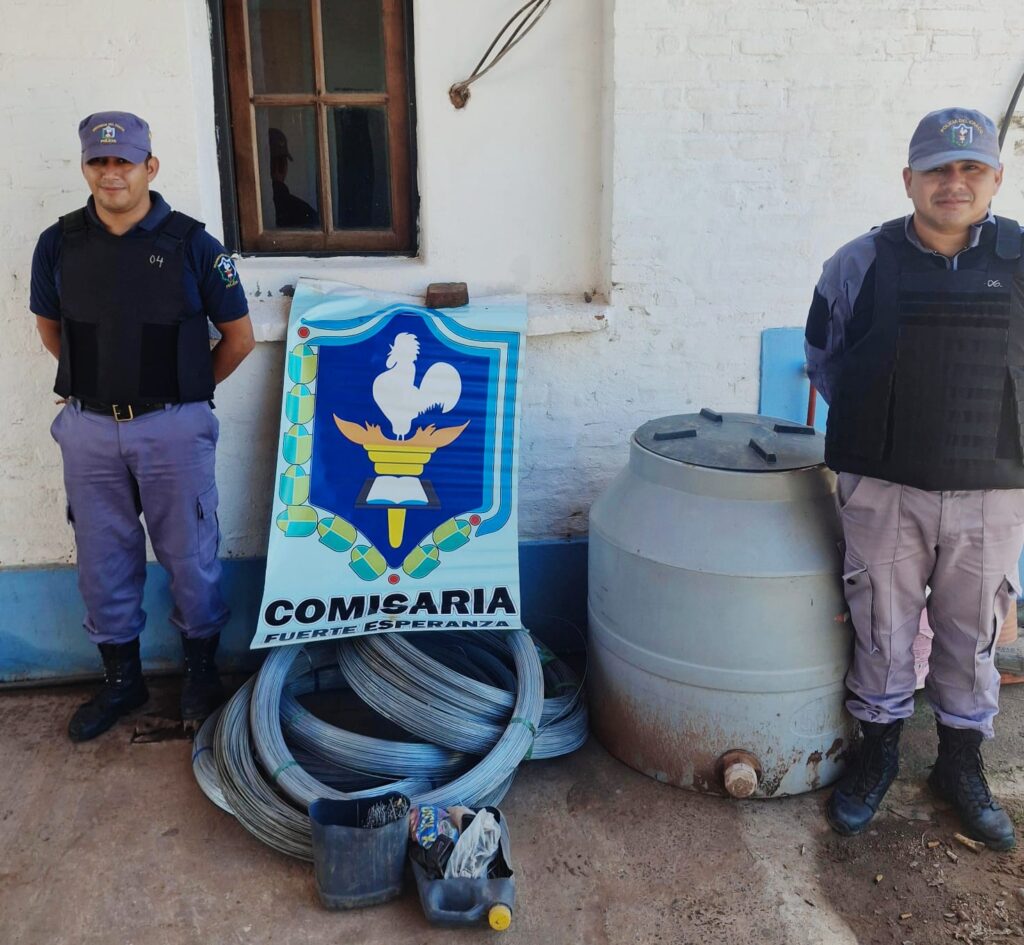 En la localidad de Fuerte Esperanza, personal policial intervino en una causa por la presunta sustracción de materiales rurales en un campo ubicado a unos 15 kilómetros del casco urbano.