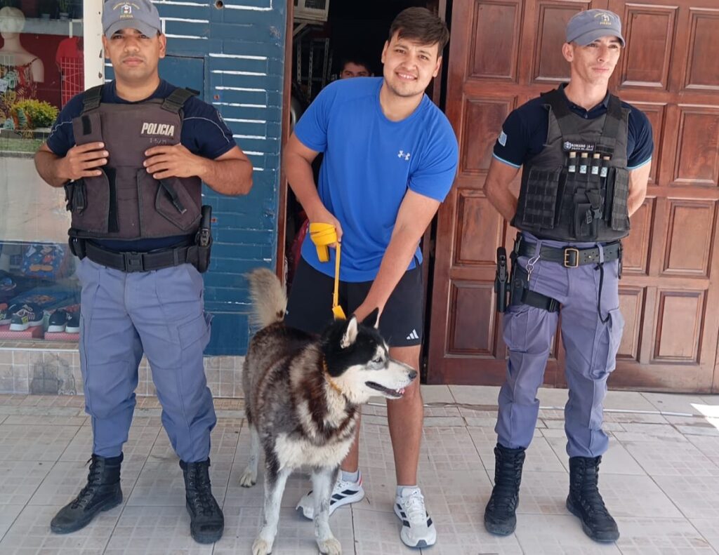 Este martes a eso de las 15:35, efectivos de la División 911 realizaban sus recorridas por inmediaciones de la Escuela Comercio de General San Martin. Allí observaron un can raza siberiano un poco alterado y que casi es embestido por un auto.