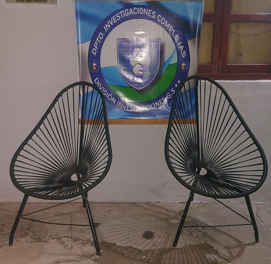 Tras tareas investigativas, logran ver a dos hombres por inmediaciones de Ruta N° 90 y avenida Brown transportando elementos con características similares a lo sustraído, quienes al notar la presencia policial dejan abandonado los bienes y se dan a la fuga.
