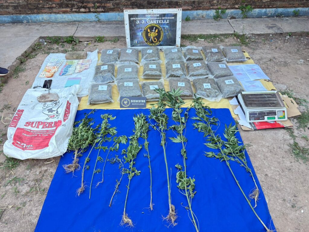 En un importante operativo ejecutado por la División Operaciones Drogas Interior de Juan José Castelli, dependiente de la Dirección General de Consumos Problemáticos y la Dirección Antinarcóticos, se concretó este sábado un allanamiento que derivó en el secuestro de más de 19 kilos de cogollos de marihuana, once plantas de cannabis y diversos elementos asociados al fraccionamiento y comercialización de estupefacientes.