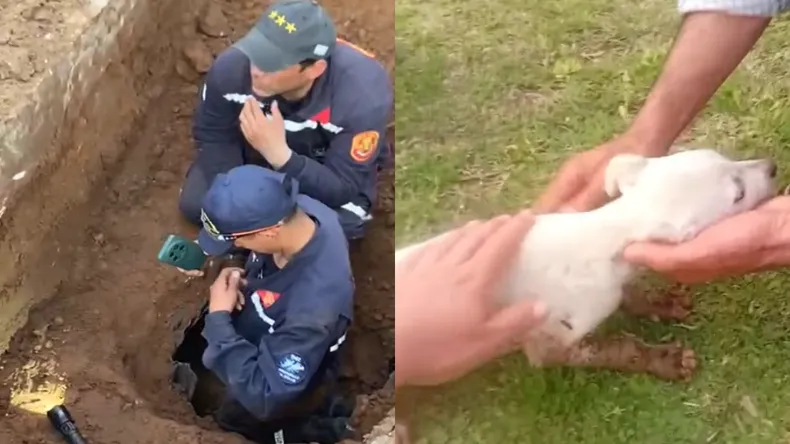 El dramático episodio empezó cuando los vecinos detectaron que un cachorro había quedado atrapado dentro de un caño de la alcantarilla. «Se tuvo que romper la calle y encontrar la cámara séptica, me metí con ayuda de mi superior, estaba sobre 5 metros a dentro del caño, como resignada, no se movía, no emitía sonido», contó Emmanuel.