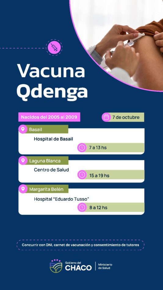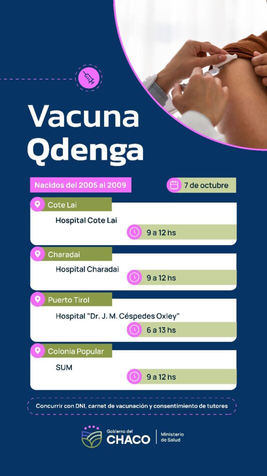 Este lunes 7 de octubre además de la ciudad de Resistencia, la campaña estará enfocada en la Región Sanitaria 3, correspondiente a las localidades de Puerto Tirol, Laguna Blanca, Basail, Colonia Popular, Cote Lai, Charadai y Margarita Belén.