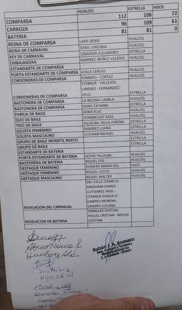 Por inclemencias climáticas se suspendieron y finalizaron los carnavales del impenetrable 2024, de tres noches programadas se vivieron DOS, donde los jurados pudieron destacar y valorar el trabajo de los coreógrafos, diseñadores y bailarines de las tres comparsas que participaron. La gran ganadora es la comparsa del Capullo HUALOQ ALA así festeja sus 30 años.-
