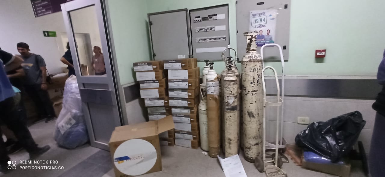 En el deposito se encontró entre otras cosas los siguiente 9 tubos de oxígenos 2 de ellos con etiqueta nuevos, rollos de tejidos, 3 balanzas, equipamiento informático, dos cajas de placas radiográficas de 35 x 35 manual,” valuada en casi 3 millones de pesos” , 20 cajas por 100 pastillas Larvicidas vencidas para la lucha contra el dengue, camisolines, mamelucos, en cantidades incalculables. Jeringas, jevity sueros que se usan en terapia intensivas, medicamentos, guantes, agujas, entre otros elementos de suma necesidad.