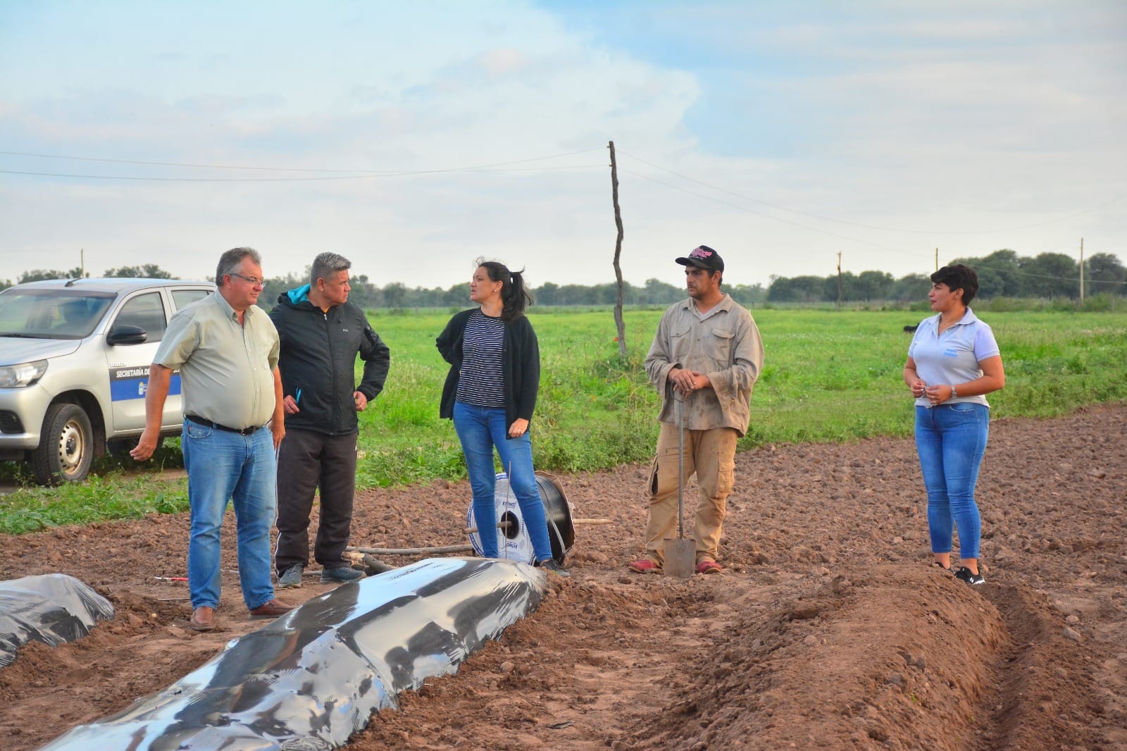 El intendente Pío Oscar Sander, acompañado por la secretaria de Producción y Desarrollo Local, Jessica Kloster, visitaron a los productores para supervisar los trabajos en curso.