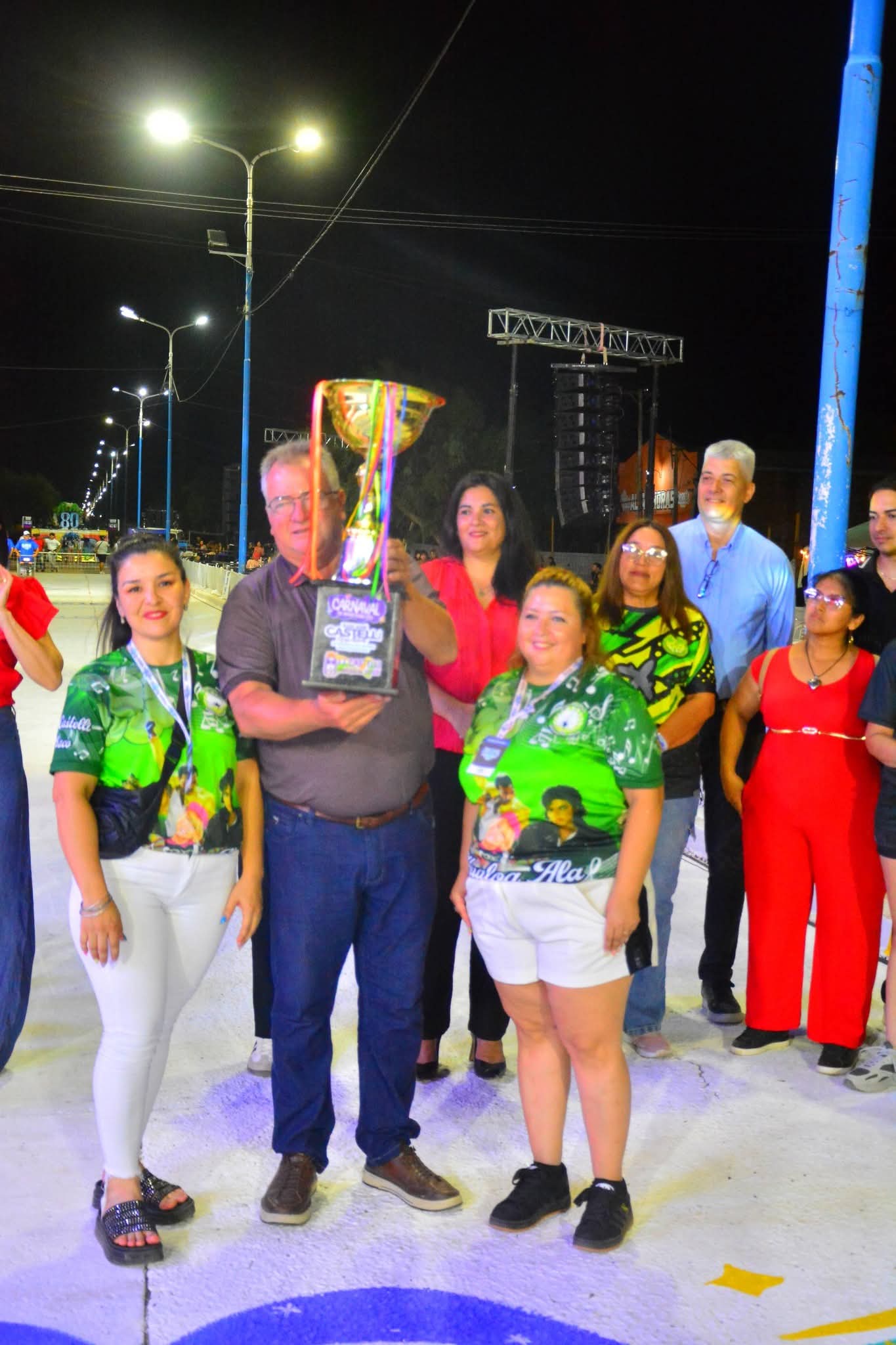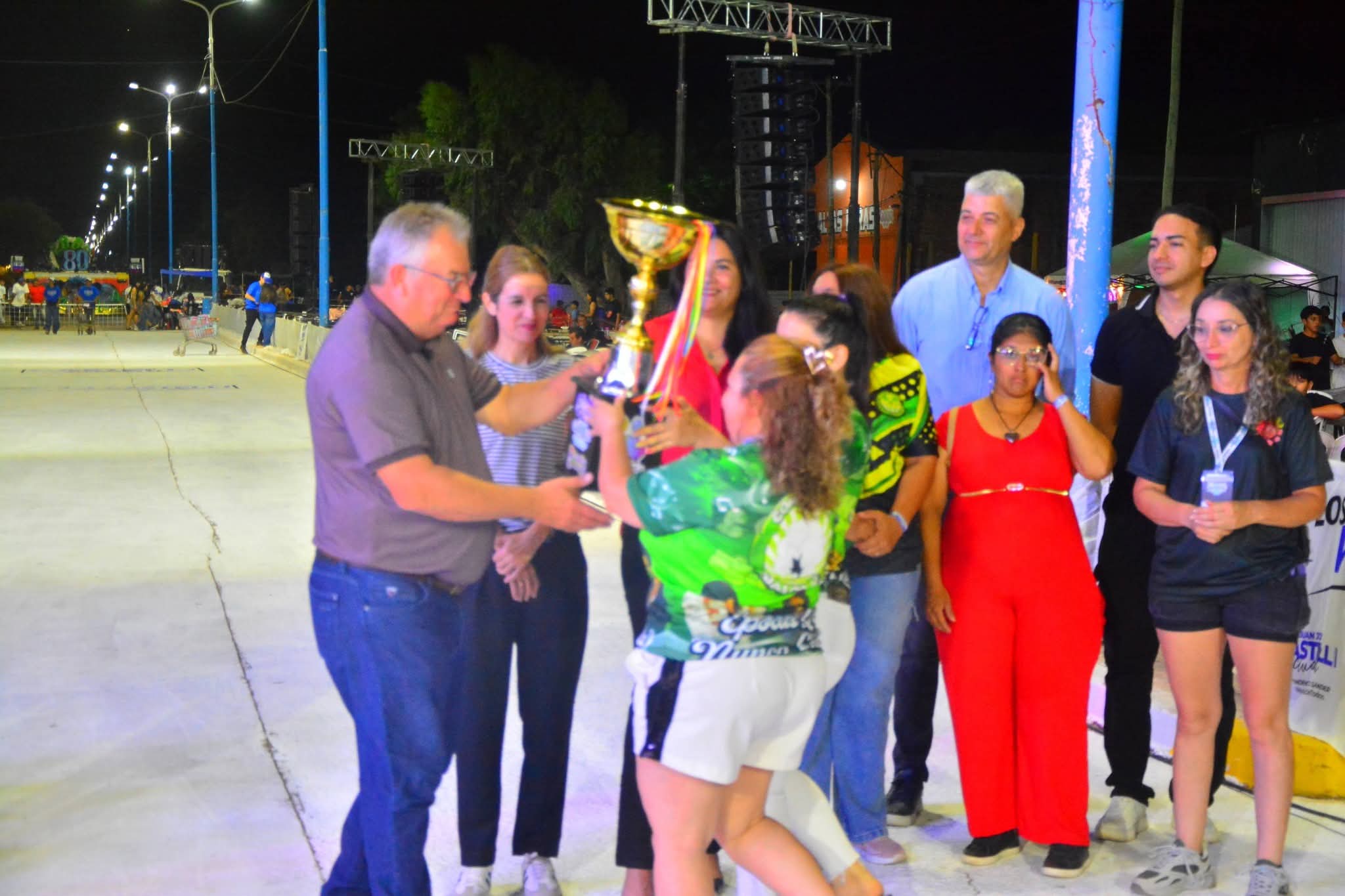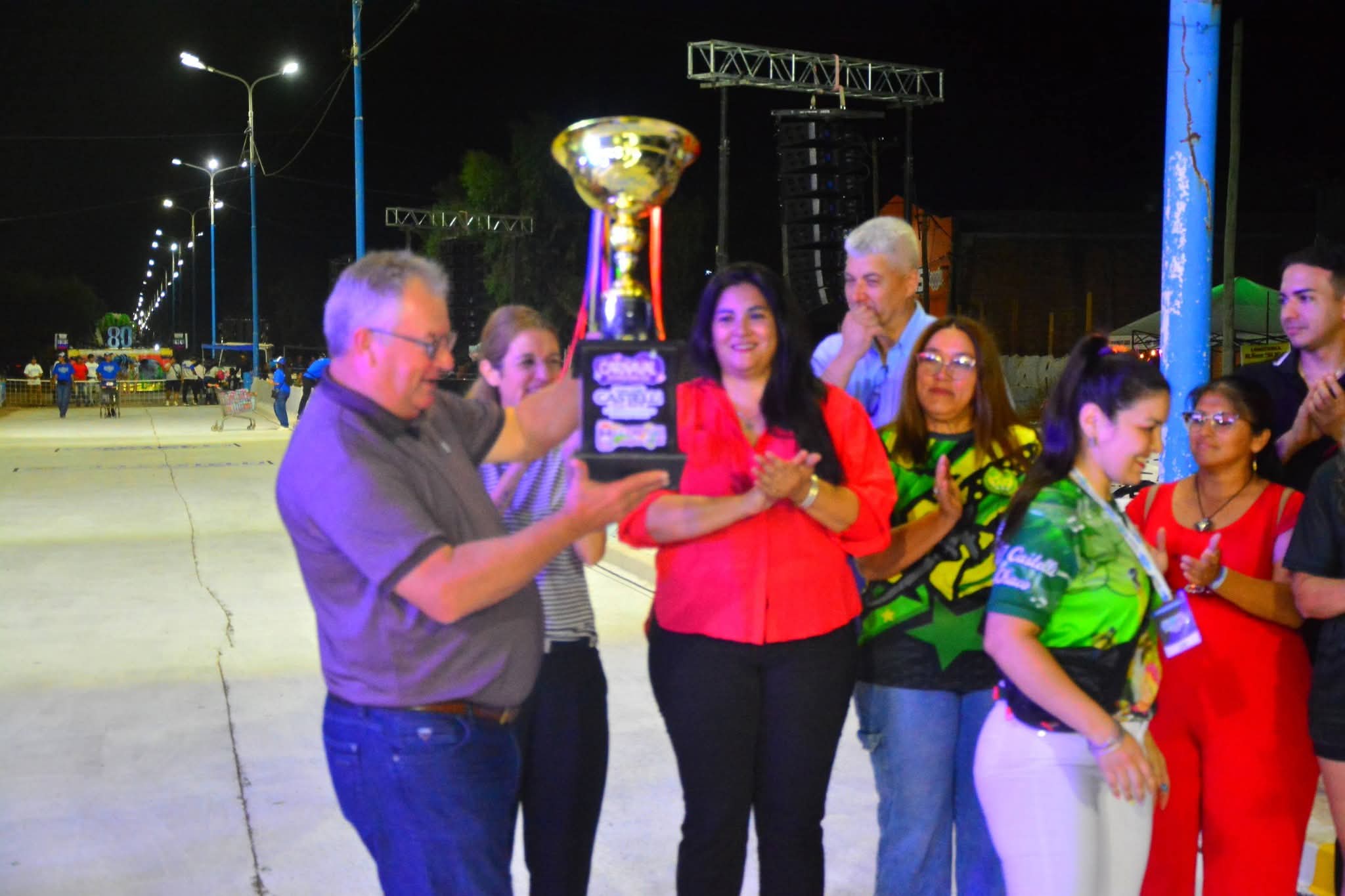 En el acto de apertura, el intendente de Juan José Castelli, Pío Sander, recibió la Copa Impulsa 🏆, trofeo por el cual las tres comparsas participantes competirán a lo largo de cuatro noches, demostrando su creatividad, preparación y compromiso artístico para consagrarse como ganadoras de esta edición.