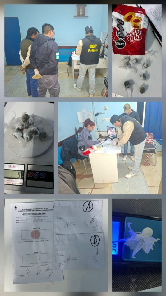 Arribó al lugar personal policial del Departamento de Consumos Problemáticos que analizaron los envoltorios y resultaron ser siete envoltorios con cannabis sativa, y un envoltorio con cocaína. El hombre de 40 años fue aprehendido por Supuesta Infracción a la Ley de Estupefacientes a disposición de la Fiscalía Antidrogas en turno.