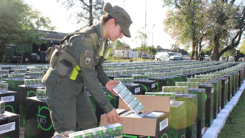 Trasladado a la sede del Escuadrón, la requisa confirmó las sospechas: 250.000 atados de cigarrillos sin aval aduanero, ocultos entre la carga.