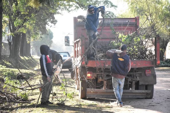 Aun con las bajas temperaturas, el equipo municipal sigue trabajando intensamente en diferentes barrios de Tres Isletas con tareas de desmalezado, limpieza integral, recolección de ramas y residuos, además de la nivelación de suelos para mejorar la circulación y el entorno urbano.