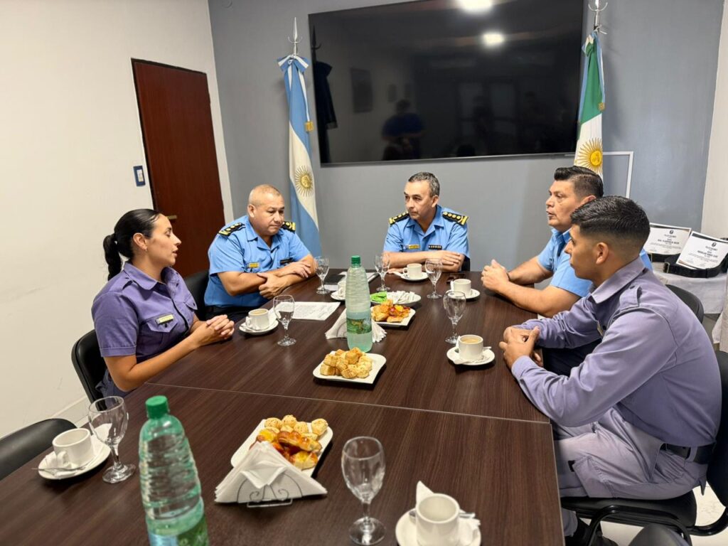 Pasadas las 9 de la mañana, el jefe de Policía, Comisario General (R) Fernando Javier Romero; el subjefe de Policía, Comisario General Manuel Victoriano Silva; y el director ejecutivo del Ce.A.C. Policial, Comisario General Cristian Antonio Durand, recibieron y agasajaron a los agentes de Policía Florencia Dul y Ángel Aguilar, quienes gracias a su profesionalismo y capacitación lograron salvar la vida de la menor.