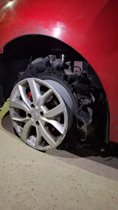 El intento de fuga y la conducción temeraria provocaron que uno de los neumáticos del vehículo se destruyera.