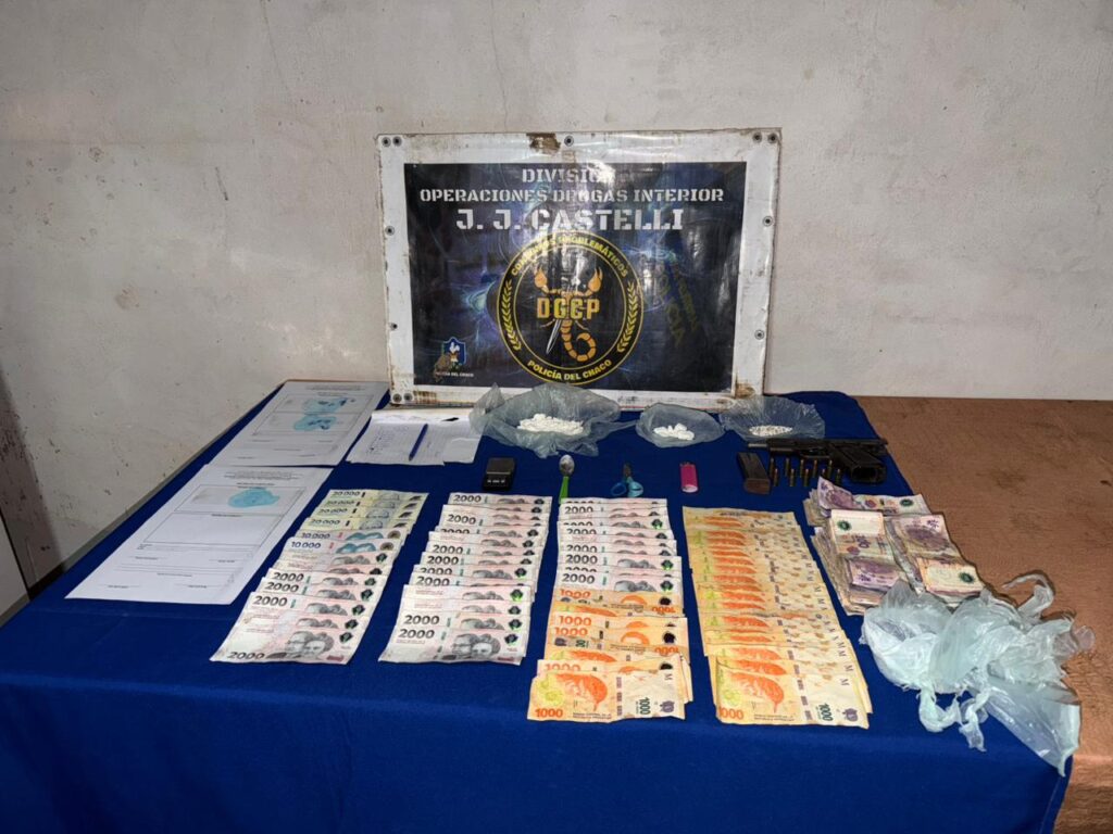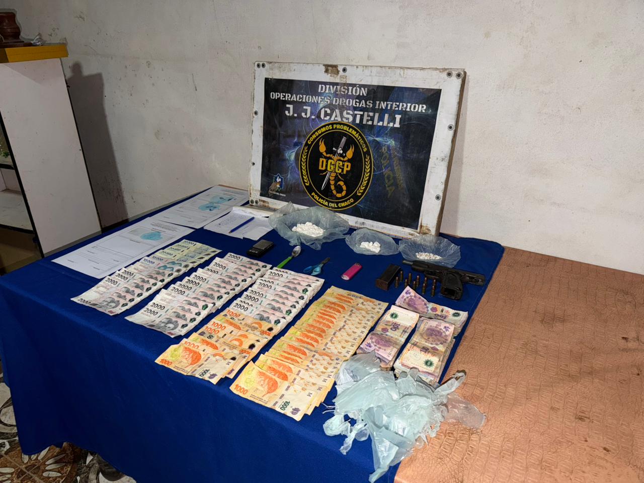 Personal de la División Operaciones Drogas Interior de Juan José Castelli, llevó adelante un allanamiento que culminó con el secuestro de estupefacientes, dinero en efectivo, celulares, un arma de fuego y la aprehensión de dos hombres.
