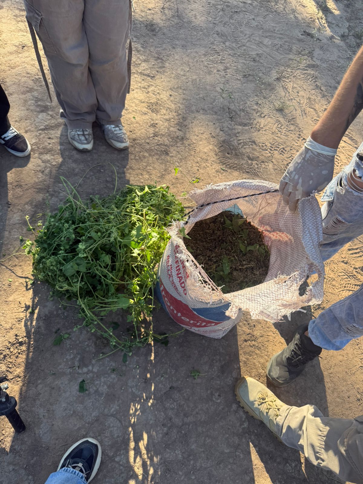 En presencia de testigos, se procedió a la requisa del bulto, constatándose que contenía más de 7,7 kilogramos de sustancia vegetal que, tras la prueba de campo, arrojó resultado positivo para cannabis. La droga se encontraba oculta bajo una capa de vegetación para disimular su contenido.