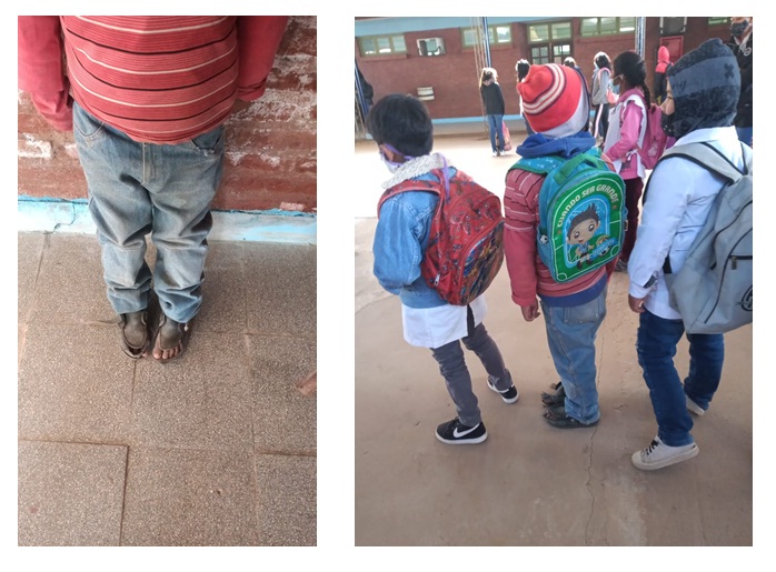 Danielito parece que no quiso dejar de asistir a la escuela, porque quizás alli pueda encontrar o tener su plato de comida más allá de presenciar sus clases el niño se presentó esa mañana a su jornada escolar con sus calzados totalmente deteriorados sin media que pueda cubrir sus piecitos del frio que azotaba la región.