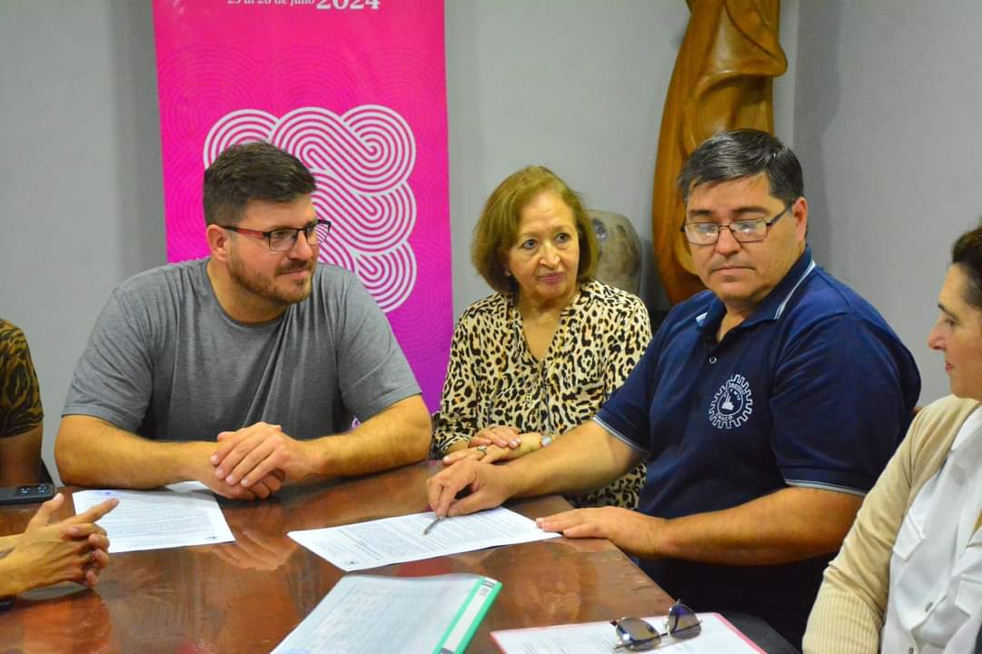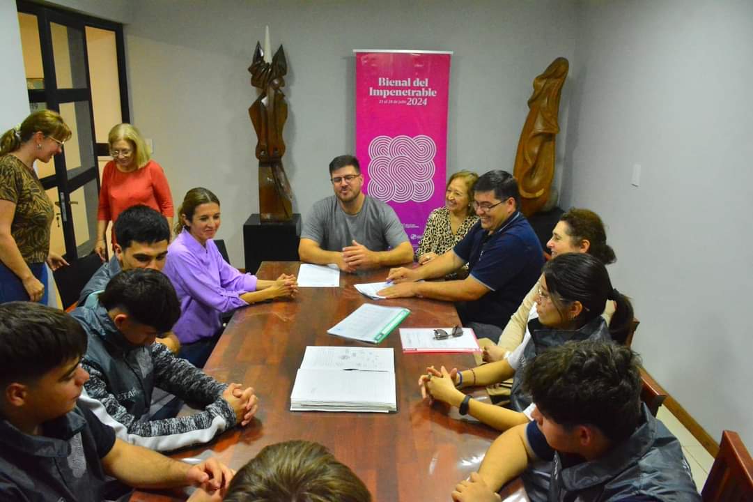 📌»Este viernes 19 de julio, a pocos días del inicio de la Bienal del Impenetrable, el presidente de la Fundación Amigos del Arte, junto a alumnos y el director de la Escuela Técnica N° 12, firmaron un acta de acuerdo. Este documento establece que los alumnos de la escuela técnica participarán en el evento como colaboradores, acompañando a los escultores durante la Bienal.