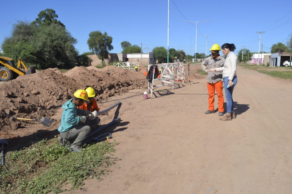 La Intendenta, Inés Ortega, verificó el estado de avance de la colocación de los caños y además, se reunió con el encargado del personal que lleva a cabo dicha ejecución, Mario Luque.