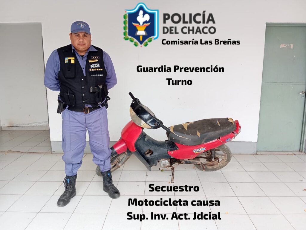 Alrededor de las 8:30 de este viernes, los efectivos de la Comisaría Las Breñas recibieron un llamado de un vecino del barrio Ex Quinta Ruiz, manifestando que dos hombres arrastraban una motocicleta 110.