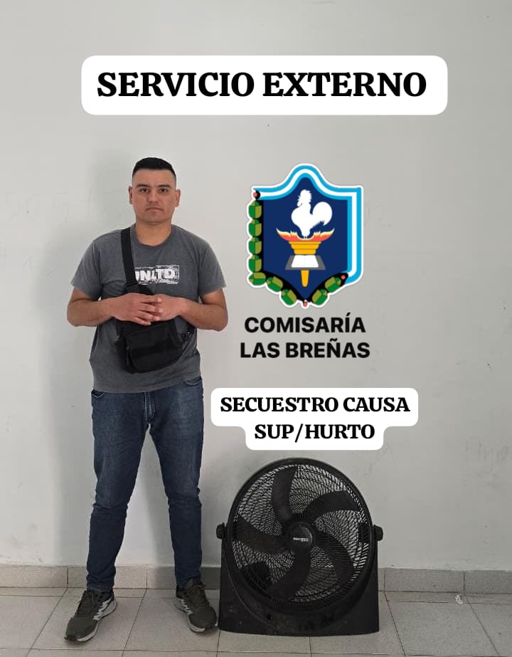 Minutos después, en el barrio Asentamiento Ortiz, efectivos policiales recuperaron un ventilador que había sido robado días antes. El electrodoméstico fue restituido a su dueño tras ser reconocido.
