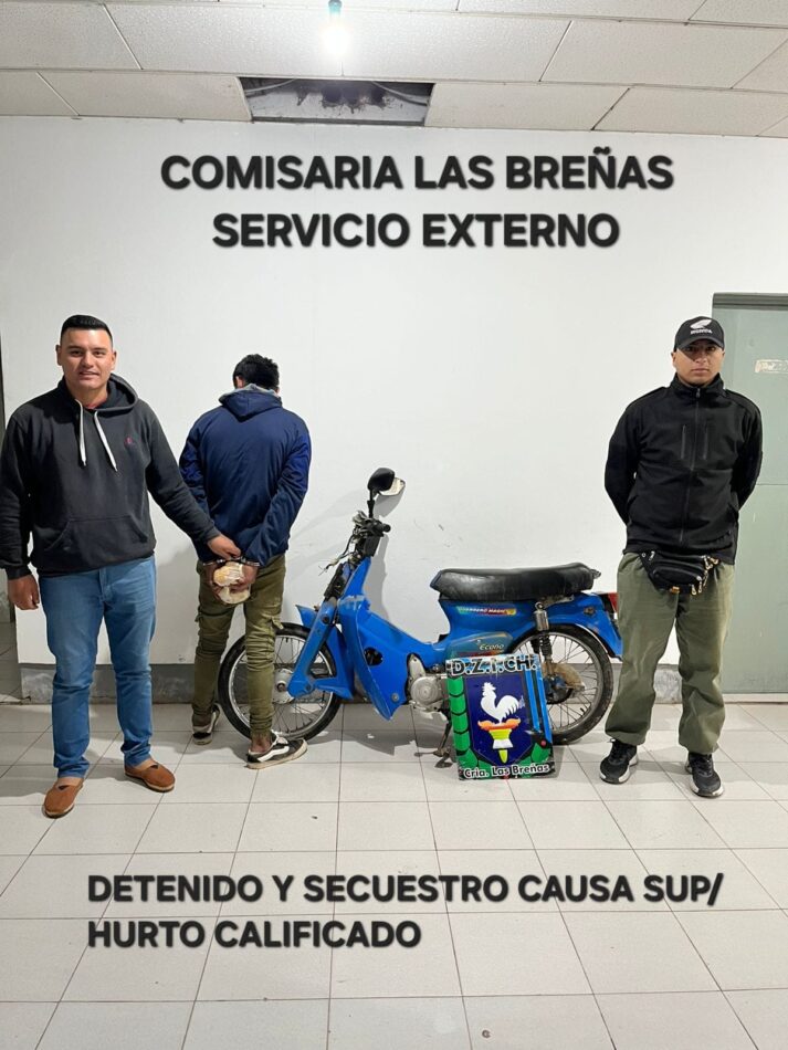LAS BREÑAS: DOS PERSONAS APREHENDIDAS POR EL ROBO A UNA MOTOCICLETA
