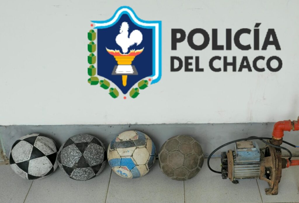 En el lugar se procedió al secuestro de cuatro pelotas de fútbol marca Gibier y un motor de agua marca Gamma de 1 HP.
