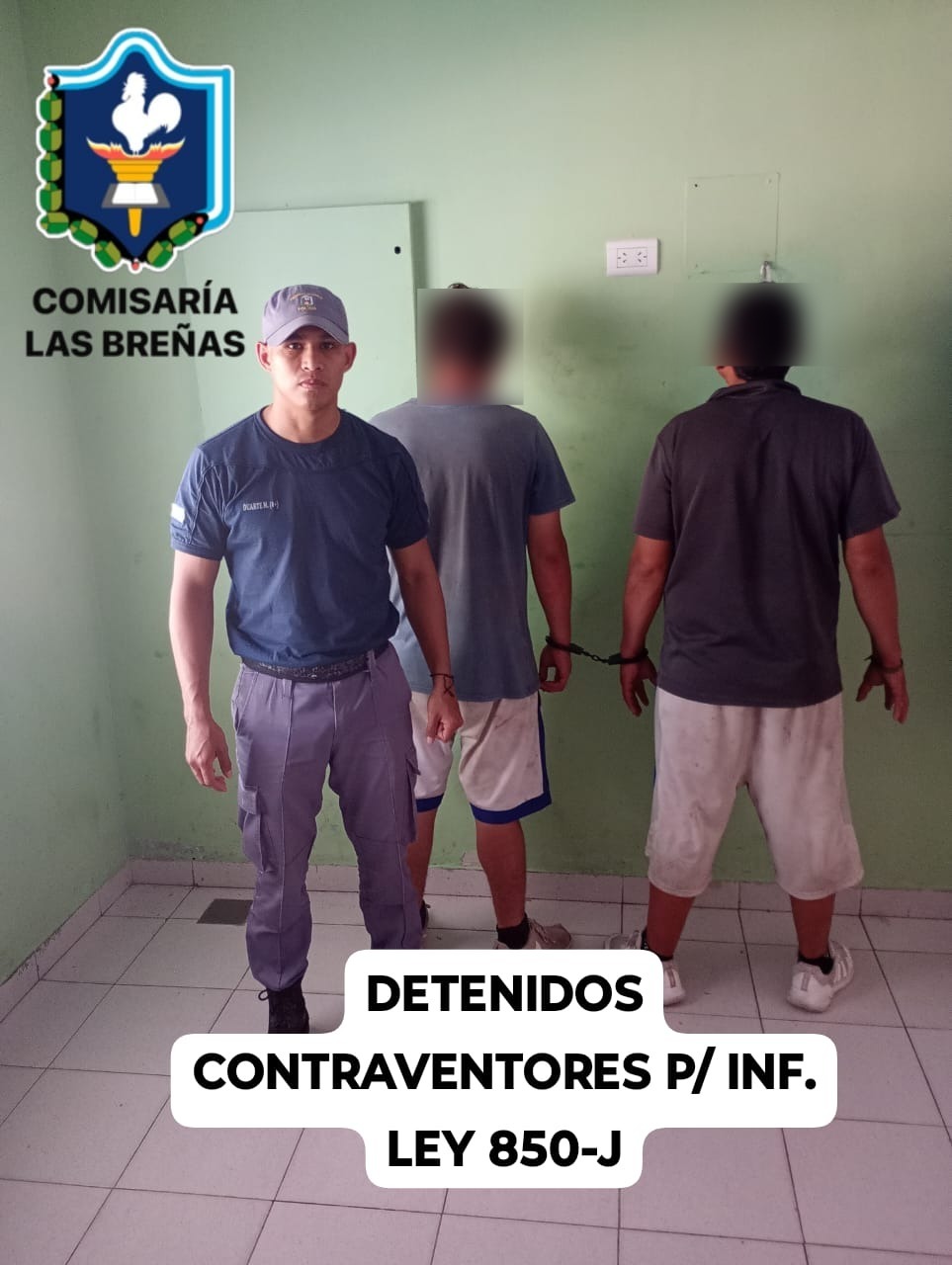 Este sábado, alrededor de las 16:55, personal de la Comisaría de Las Breñas acudió a la intersección de avenida Jones y San Martín, donde tres individuos estaban ocasionando disturbios en la vía pública.