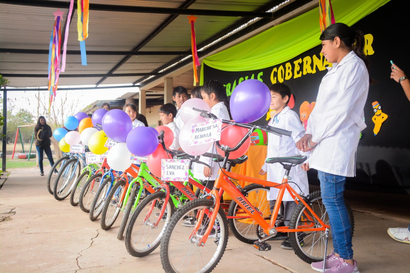 El gobernador Leandro Zdero entregó, esta tarde, bicicletas para los alumnos de la Escuela Primaria 646, Lote 41, Villa Rural El Aguará, en Machagai. “Lo que era de todos los chaqueños, llega a los niños del Chaco y en este caso, a escuelas rurales con bicicletas que fueron recuperadas de la corrupción, de la causa Barraza, y estaban antes escondidas en un galpón- apuntó el jefe del Ejecutivo provincial.