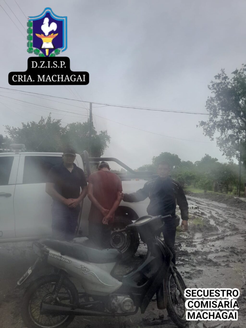 MACHAGAI, NI EL TEMPORAL FUE OBSTÁCULO: AGENTES RECUPERARON UNA MOTO Y DETUVIERON AL AUTOR