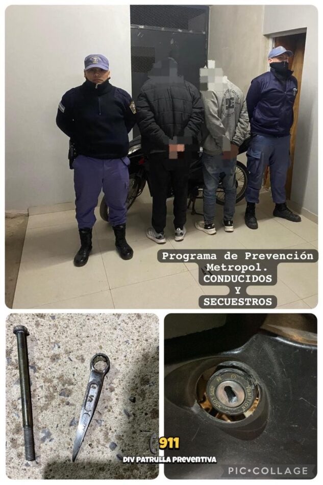 En un patrullaje preventivo, personal de la División Patrulla Preventiva logró la aprehensión de dos sujetos que intentaban sustraer una motocicleta.