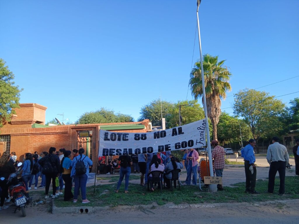 La convocatoria se concretó en horas tempranas de la mañana. A las 7:00, un importante grupo de habitantes del Lote 88 se concentró frente al Juzgado de Paz local, desde donde iniciaron una marcha hacia el edificio municipal. Allí, los manifestantes tenían previsto mantener una reunión con autoridades en busca de respuestas concretas ante la inminente definición judicial.