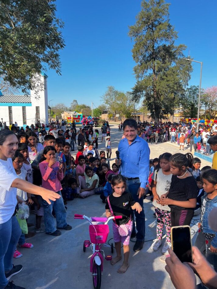 El intendente Zenón Cuellar encabezó este viernes 29 de agosto una gran celebración por el Día de las Infancias en la plaza central de El Espinillo, con una convocatoria que reunió a cientos de niñas, niños y familias de la comunidad.