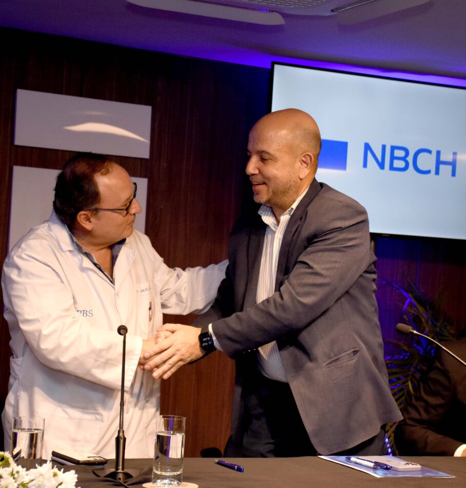 En conferencia de prensa, el Presidente de NBCH, Germán Dalhgren, y el Presidente de FUNCACORR, Guillermo Augusto Osnaghi, celebraron el acuerdo acompañados por la Gerente de Banca Individuos de NBCH, Daniela Romero, el secretario de la Fundación, Jorge Ernesto Leconte Vidal, y el Director Ejecutivo del Instituto de Cardiología, Julio Andres Vallejos.