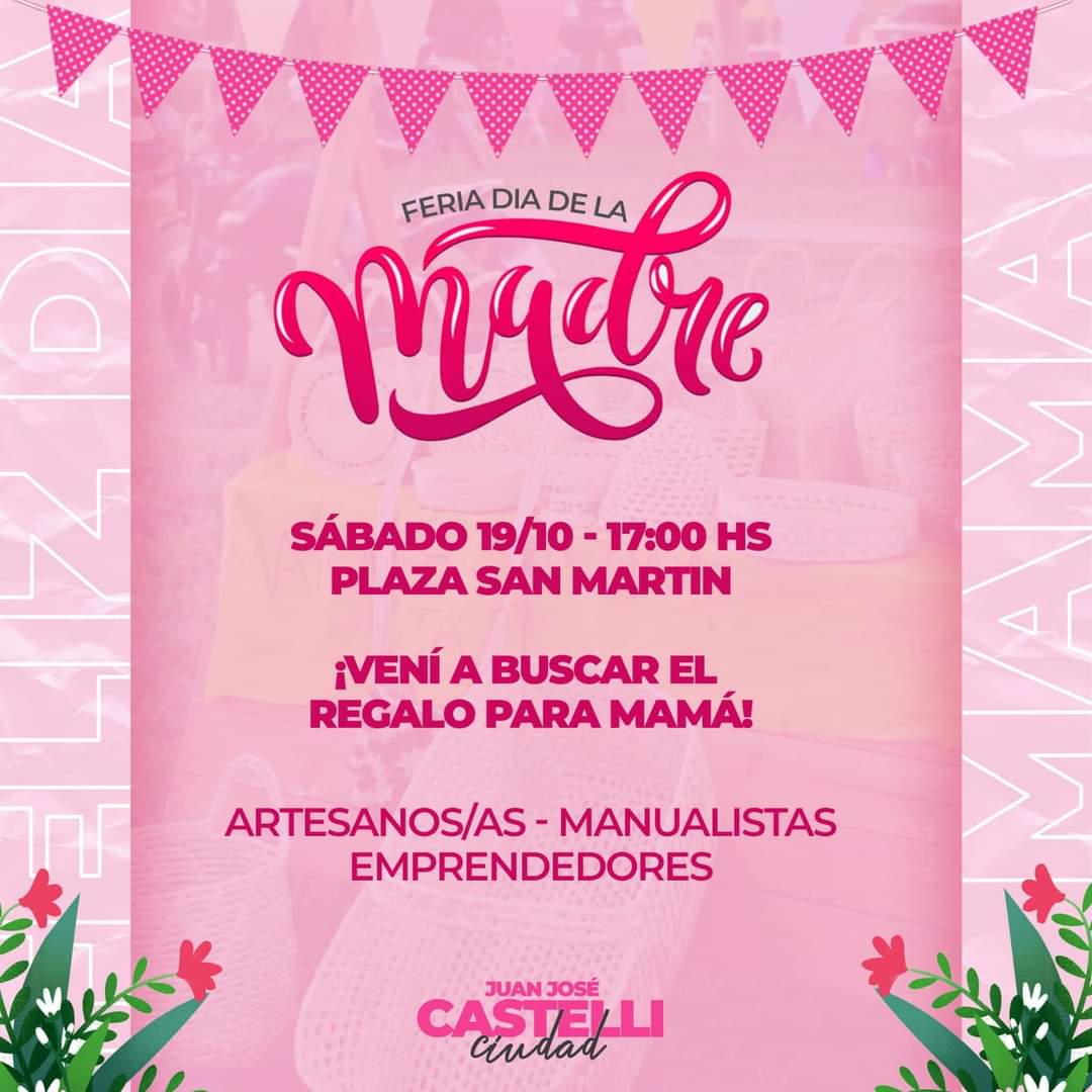 Este sábado 19 de octubre a las 17:00 hs en la Plaza San Martín te esperamos para disfrutar de una tarde llena de creatividad y regalos únicos para mamá.