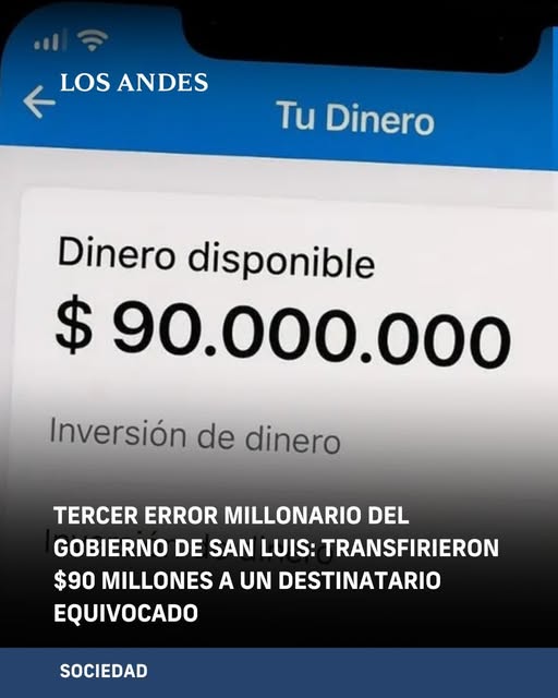 El Gobierno de San Luis volvió a quedar envuelto en una polémica por una transferencia errónea de fondos públicos, esta vez por $90 millones depositados a un destinatario no autorizado.