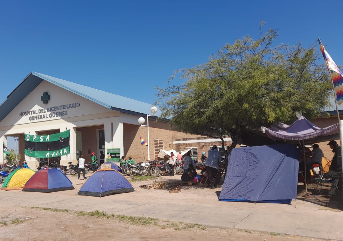 OPSA MECHA INICIA ACAMPE FRENTE AL HOSPITAL BICENTENARIO GENERAL GUEMES