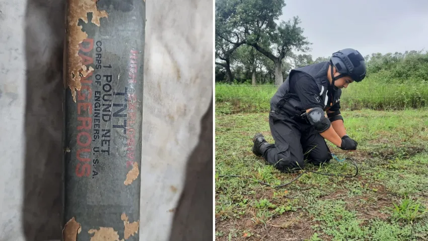 Se trató de la eliminación de una libra de trotil (TNT), catalogado como material de alto explosivo, y que fue hallado en la vía pública por un vecino de Hermoso Campo durante el 2021. Tras recoger el elemento, lo trasladó y bajo cuidado de los efectivos policiales de la comisaría local.