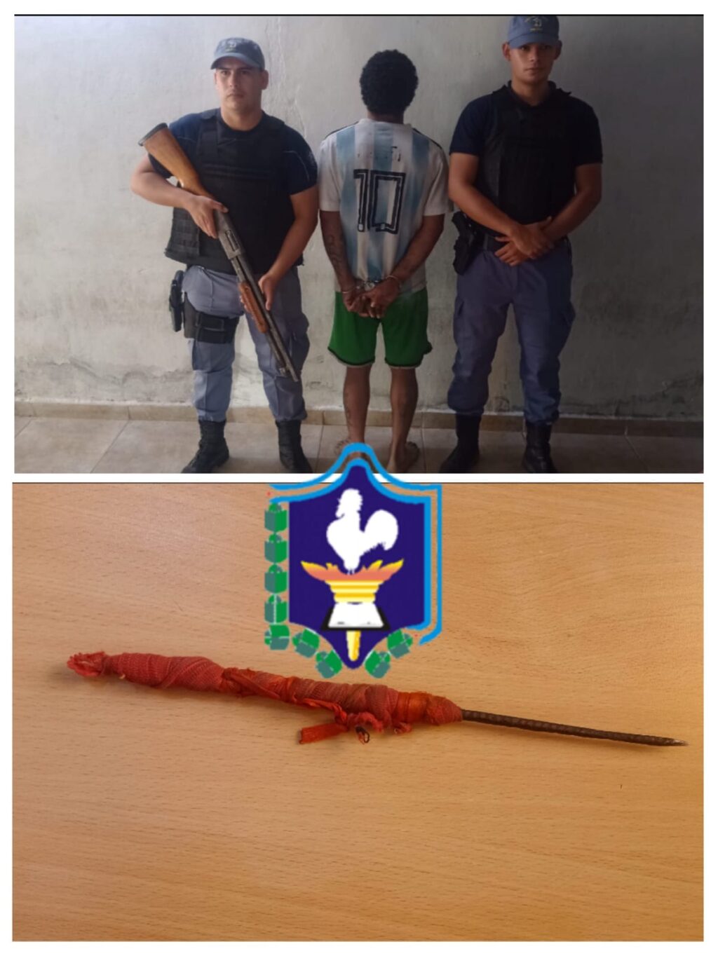 Durante la intervención, los agentes constataron que el individuo tenía en su poder un tramo de hierro con punta, el cual fue secuestrado.