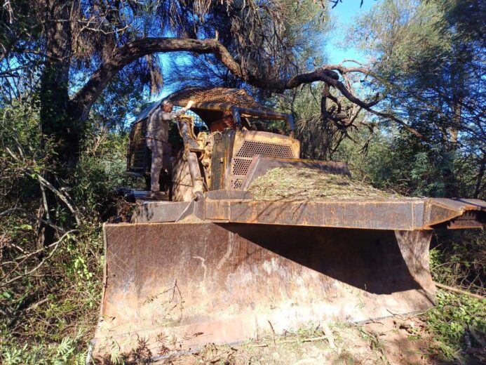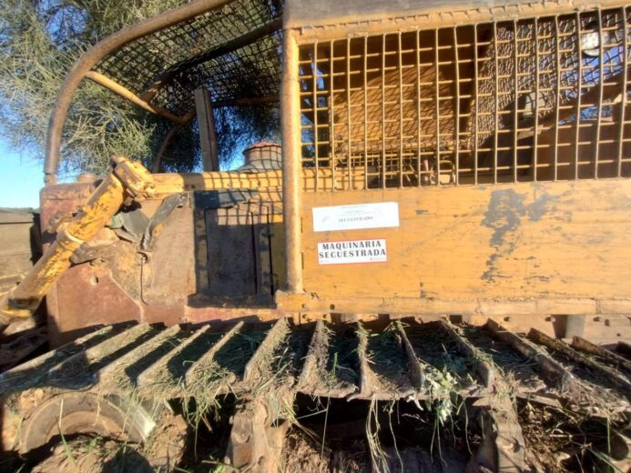 En los lugares inspeccionados se encontraron maquinarias en plena actividad de desmonte. Se trataba de dos topadoras Caterpillar que se encontraban trabajando en predio utilizando cadenas.